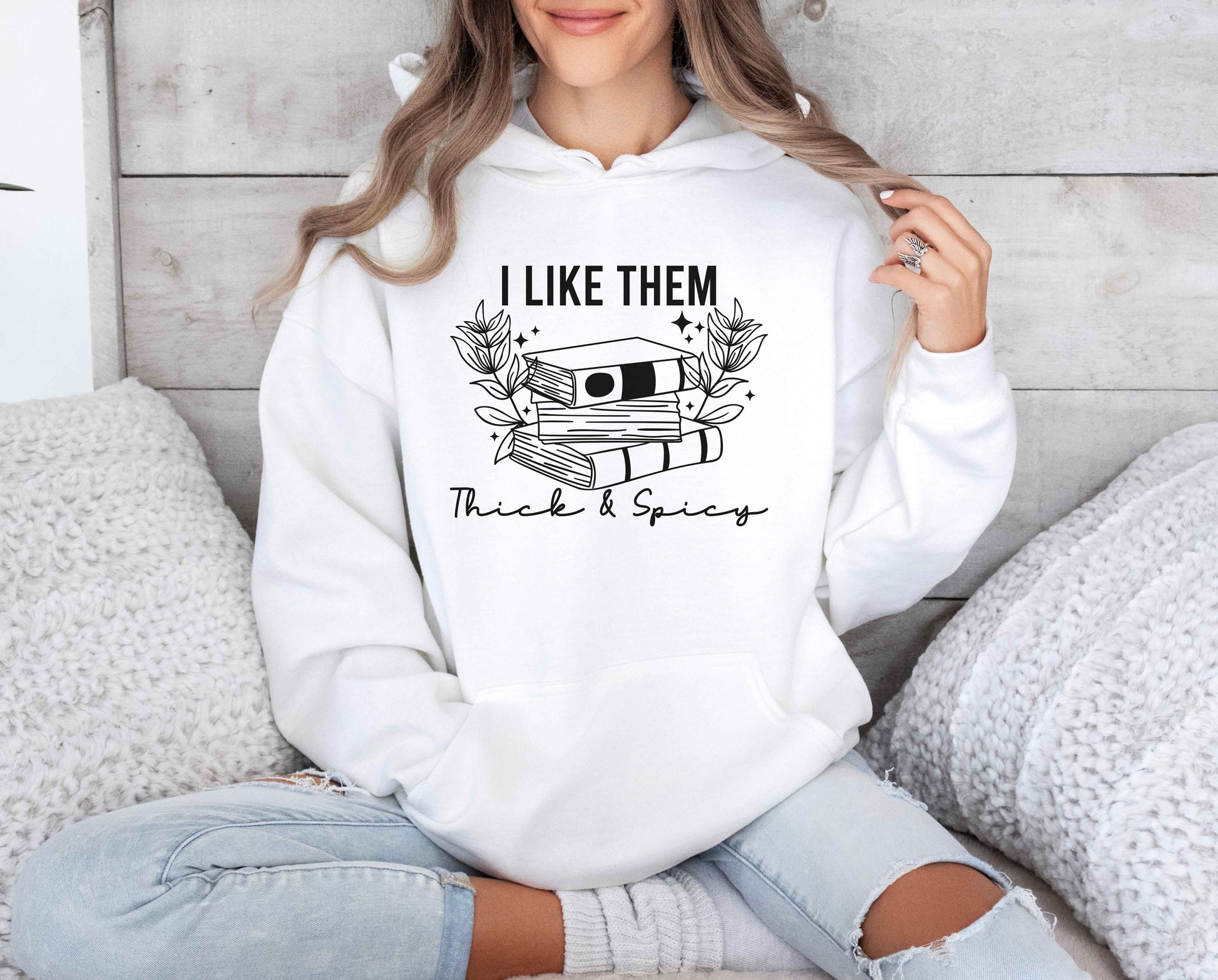 Thick plots and spicy romances? Yes, please! This "I Like Them Thick And Spicy" hoodie is a bold and humorous piece of bookish apparel for readers with specific and excellent taste.